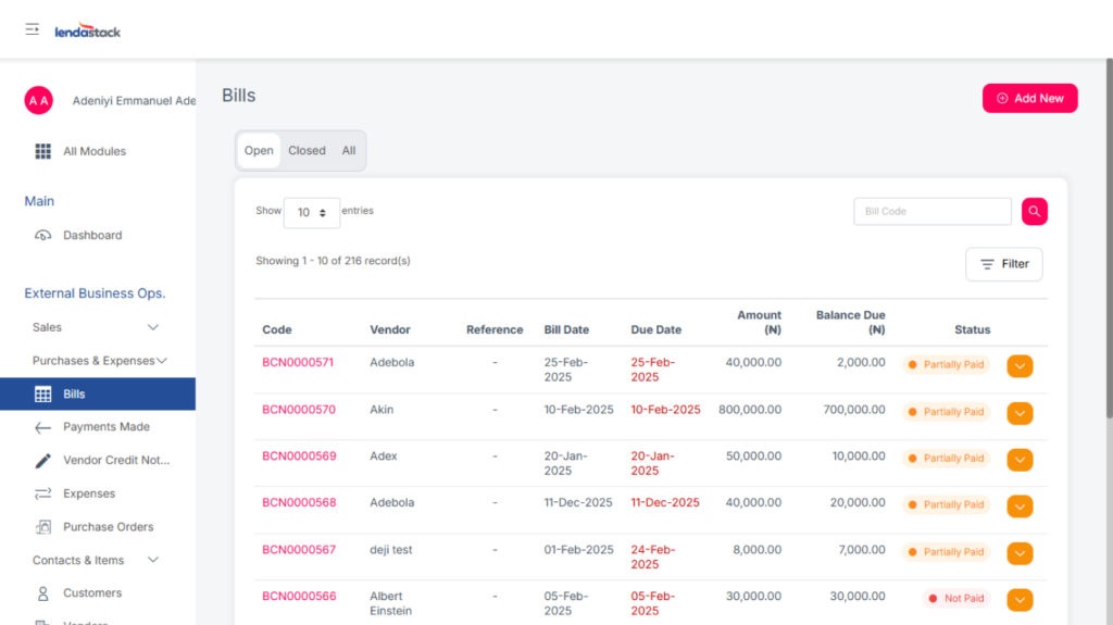 The bills are used to record what the business owes to the vendors. Here, Users can view all bills that are pending, fully paid, or partially paid.