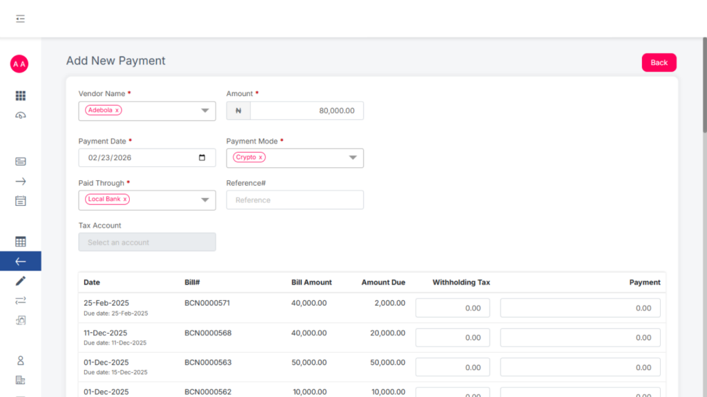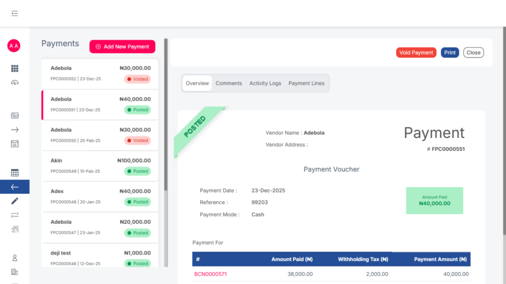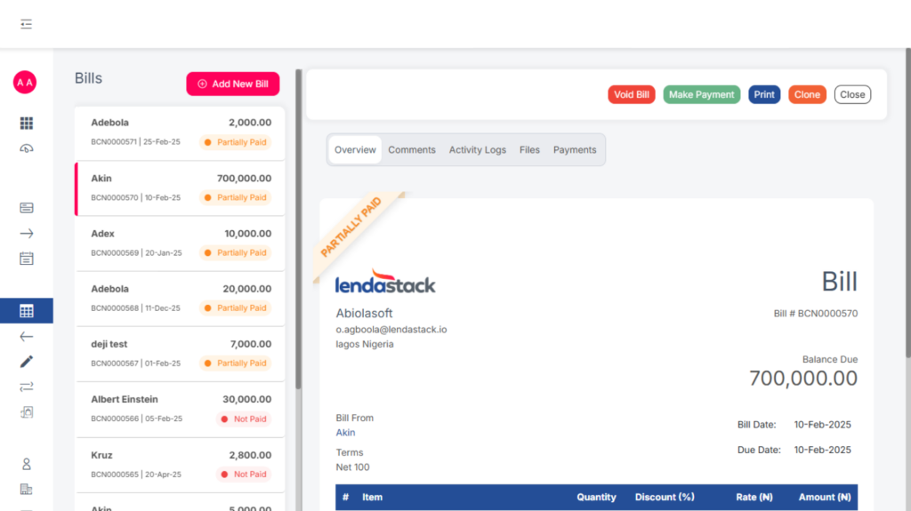 There is also the void feature which allows users to reverse already posted bills, and this can be done by the user with the permission to void.