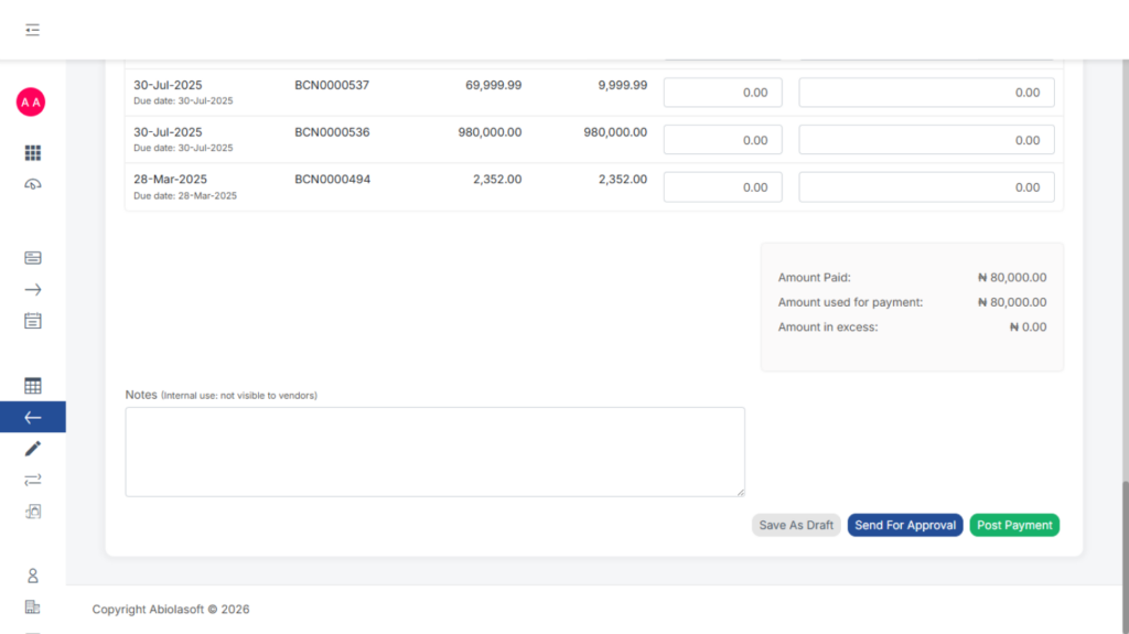 - Send for Approval: Submit the payment for review before posting.