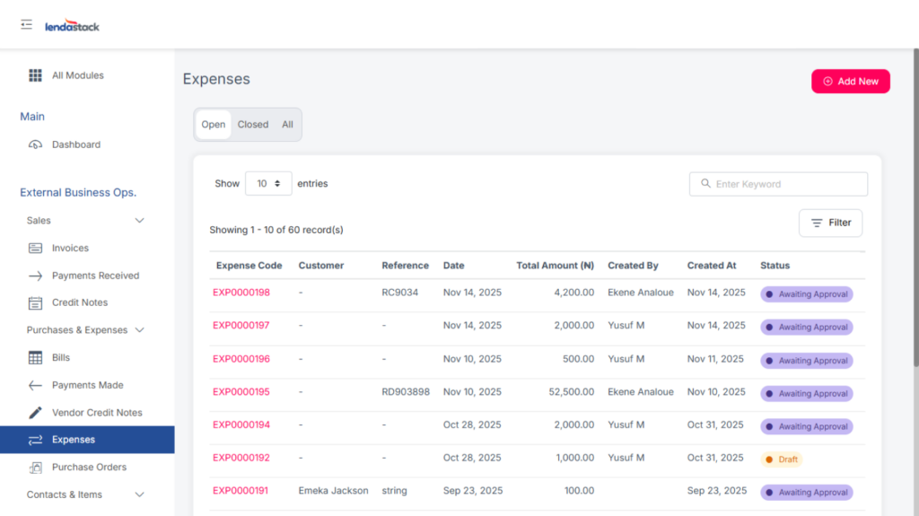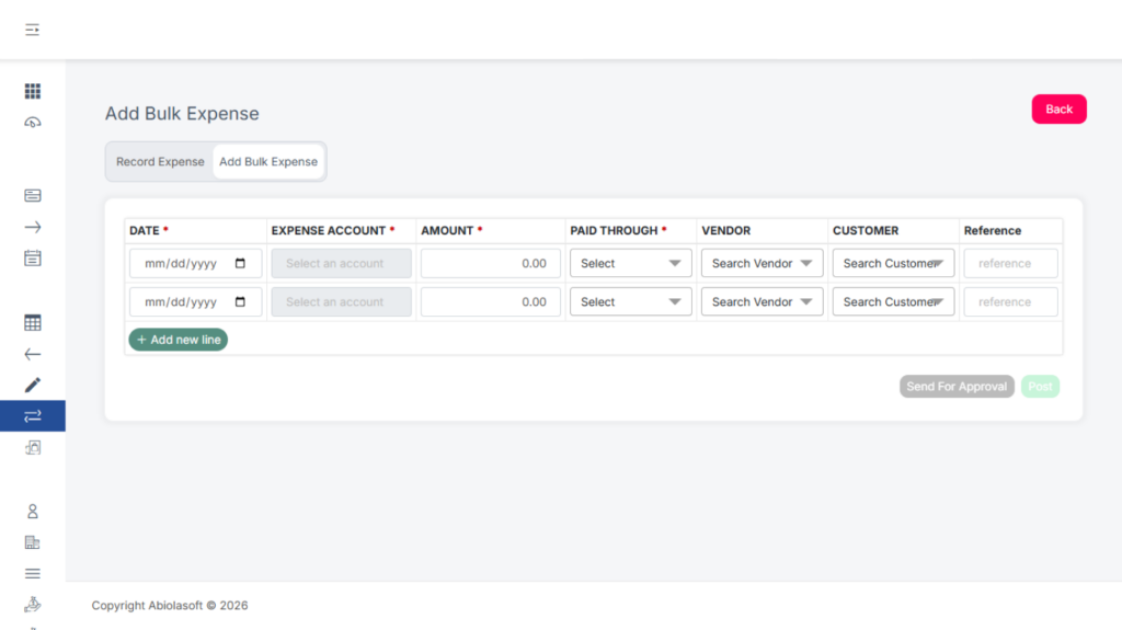 - Send for Approval – Submit the expense for review before posting.