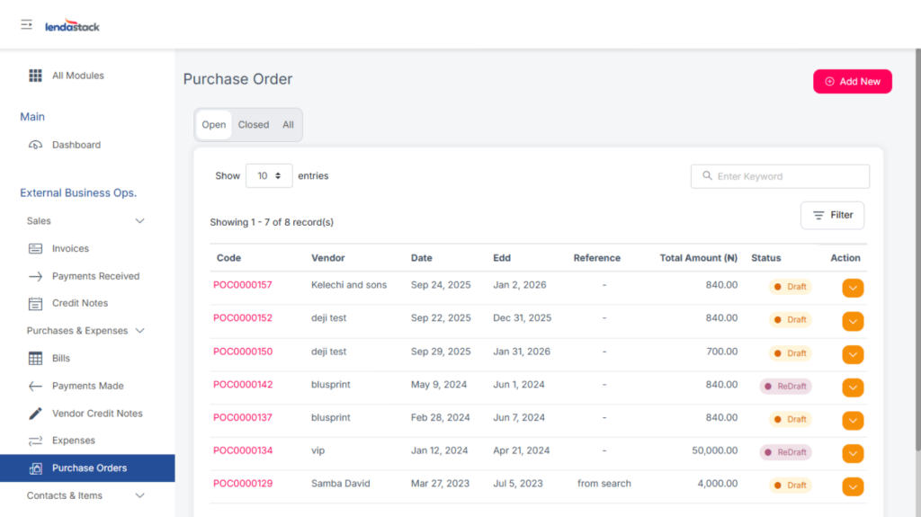 To create a new purchase order: