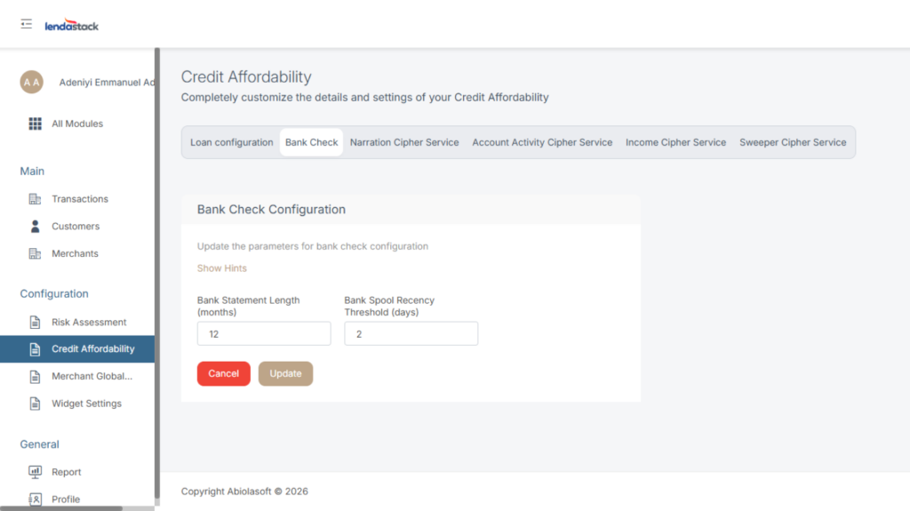 - Bank Statement Length: This configuration allows users to set the length of the bank statements to be considered during the assessment.