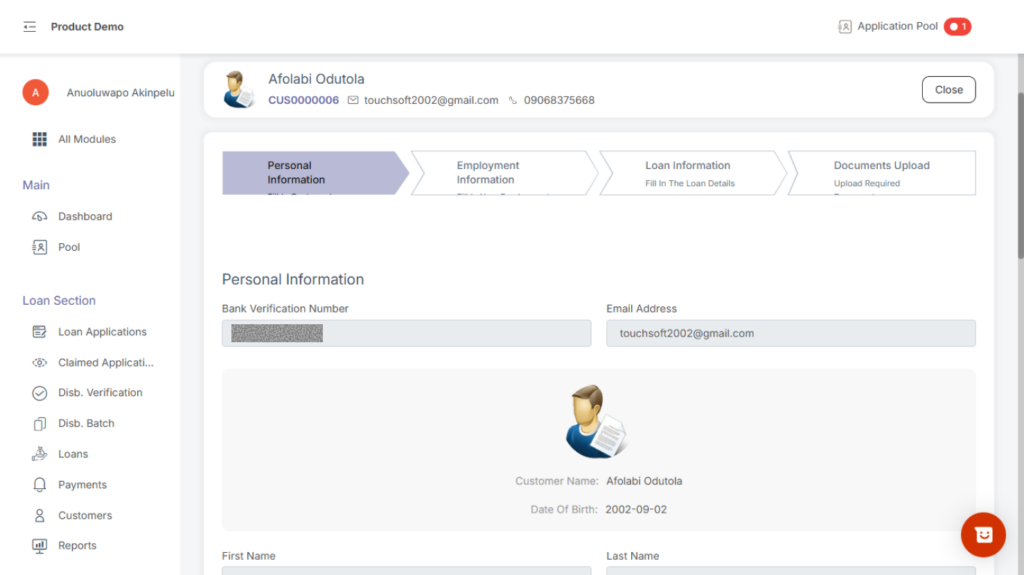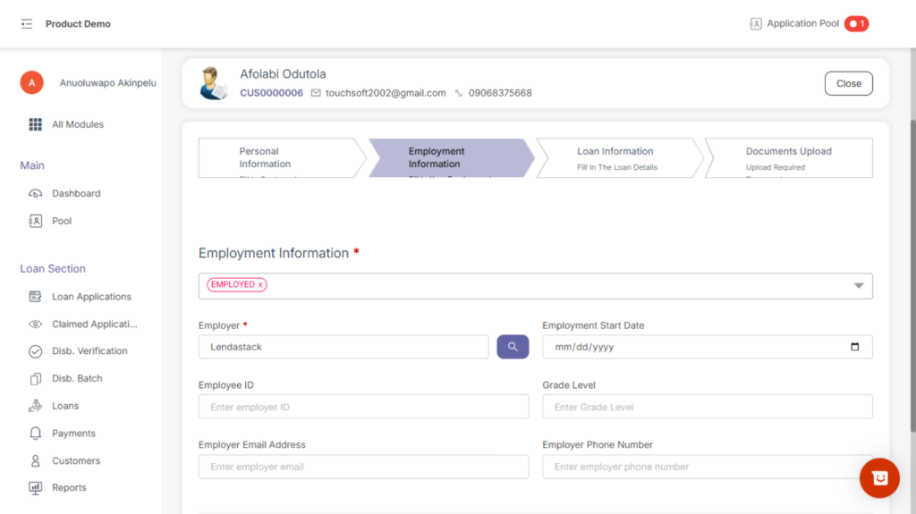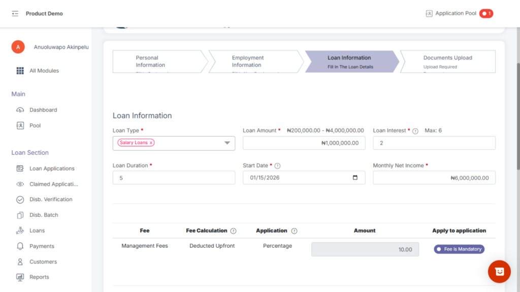 This section serves as the central hub for managing loan lifecycles and tracking application statuses.