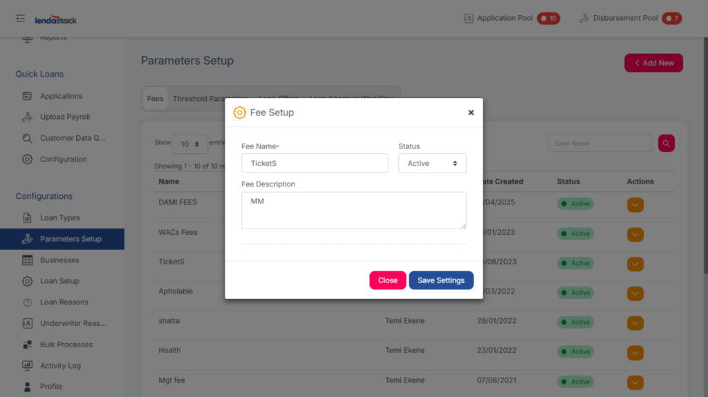 User Permission Required: Create Fees, Update Fees, View Fees