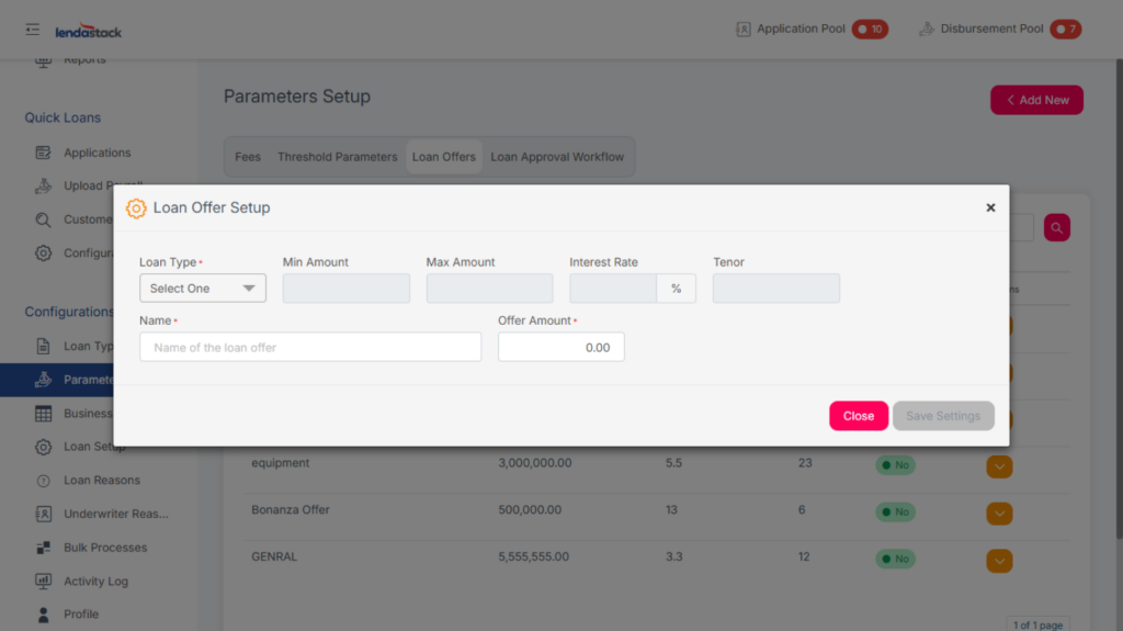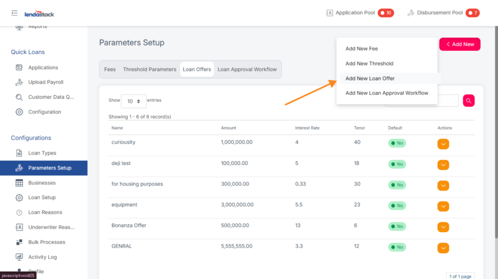 - Select Add New Loan Offer from the menu.
