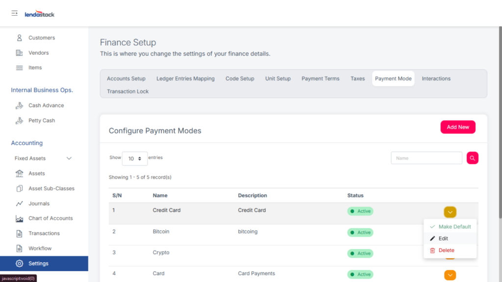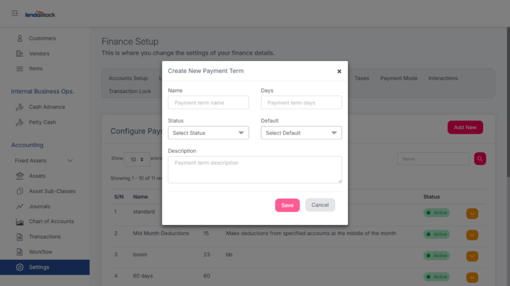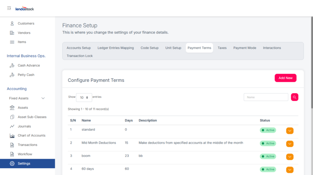 Click Add New to define payment terms.