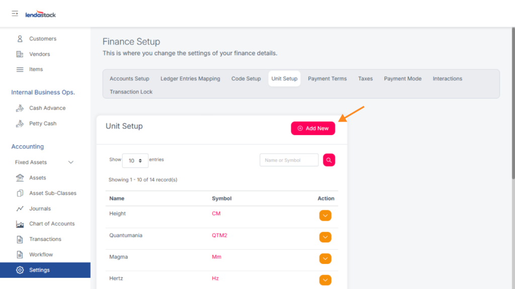 Define measurement units for goods or services by clicking Add New and filling in the pop-up form.